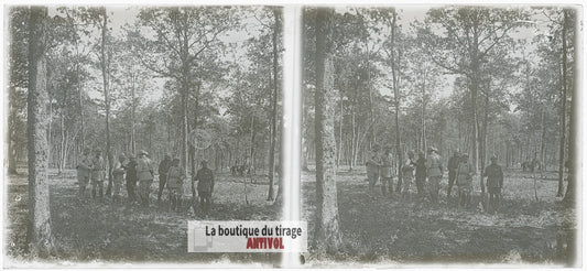 Groupe de soldats, campement, plaque verre, photo ancienne, négatif 9x12 cm