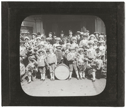 Groupe enfants musique, Montréal, photo plaque de verre, positif 8,5x10 cm