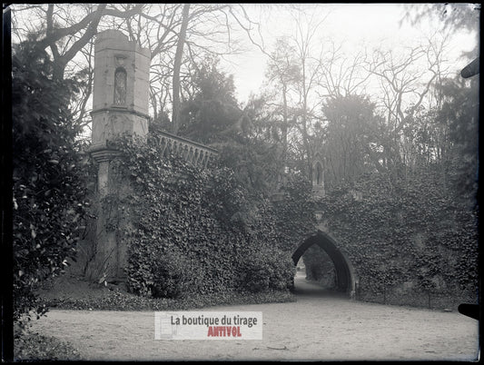 Bagatelle, Bois de Boulogne Paris, plaque verre, photo ancienne, négatif 9x12 cm