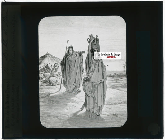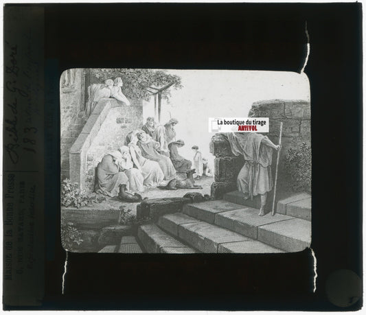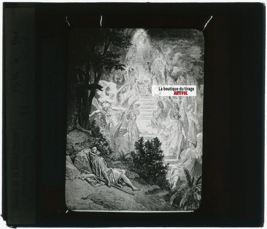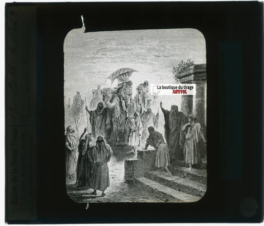 Histoire, Bible Doré, dessin, plaque de verre, noir & blanc, positif 8,5x10 cm