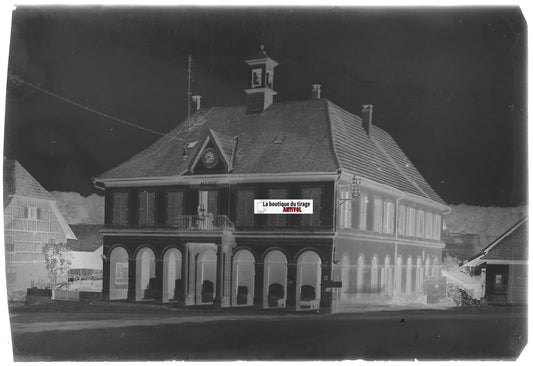 Hirsingue mairie, Plaque verre photo ancienne, négatif noir & blanc 10x15 cm