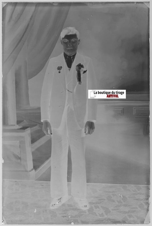 Homme, costume, Oran, Algérie, plaque verre, photo ancienne, négatif 9x12 cm