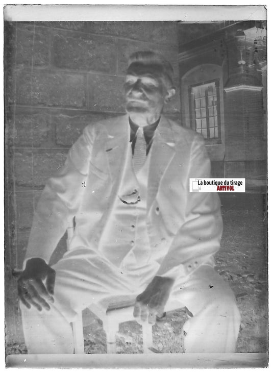 Homme, France, Plaque verre photographie ancienne, négatif noir & blanc 9x12 cm