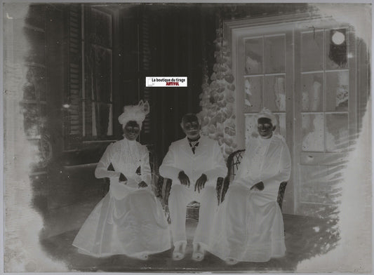 Homme, femmes, Loire, Plaque verre photo ancienne, négatif noir & blanc 13x18 cm