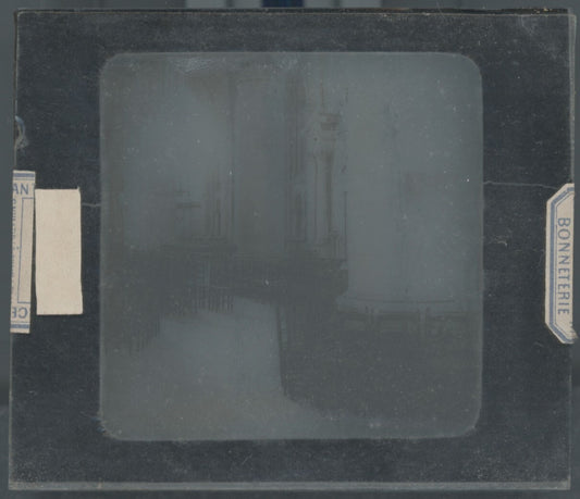 Intérieur d’église gothique, photo plaque verre, noir & blanc, positif 8,5x10 cm