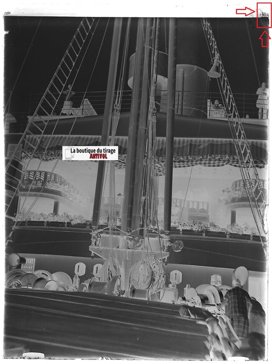 Jersey, Guernesey, paquebot, Plaque verre photo, négatif noir & blanc 9x12 cm