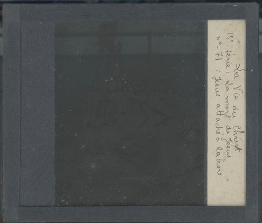 Jésus attaché à la croix, photo ancienne, plaque verre, noir & blanc, 8,5x10 cm