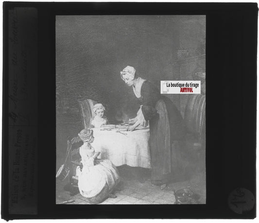 le Bénédicité, Musée du Louvre, ancienne plaque de verre, positif 8,5x10 cm