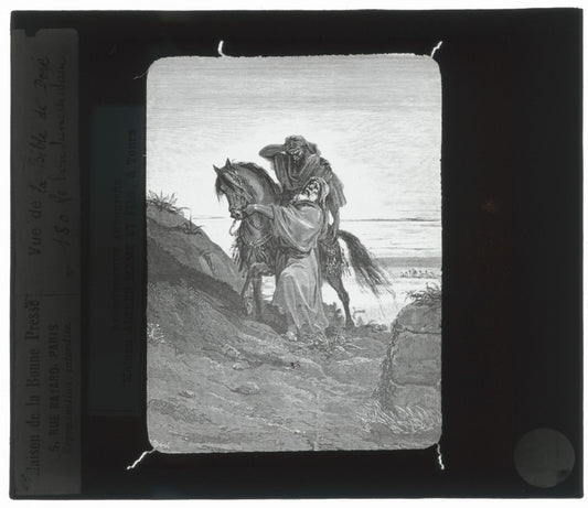 Le Bon Samaritain, Bible de Doré, dessin, plaque verre, positif 8,5x10 cm