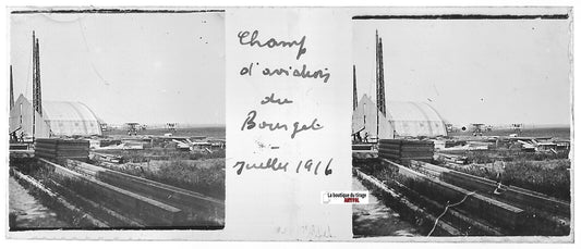 Le Bourget, avions, Plaque verre stéréo, positif ancien noir & blanc 4,5x10,7 cm