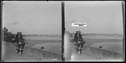 Les remparts Saint-Malo, Bretagne, plaque stéréo ancienne verre, négatif 9x18 cm