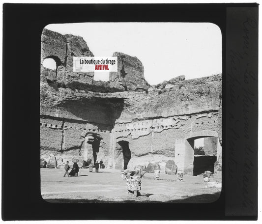 Les Thermes de Caracala, Rome, photo ancienne plaque verre, positif 8,5x10 cm