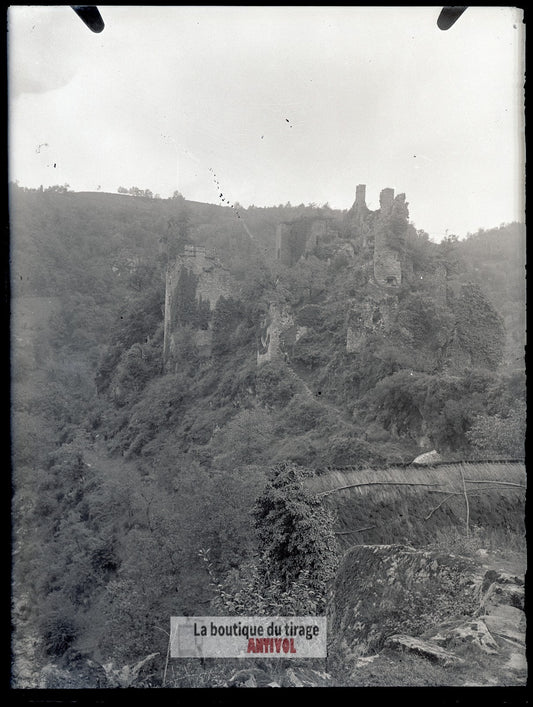 Les Tours de Merle, paysage, plaque verre, photo ancienne, négatif 9x12 cm