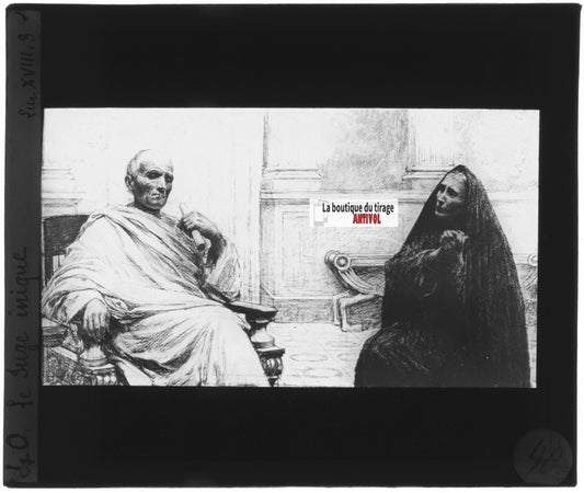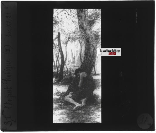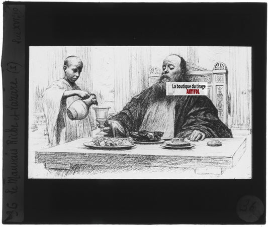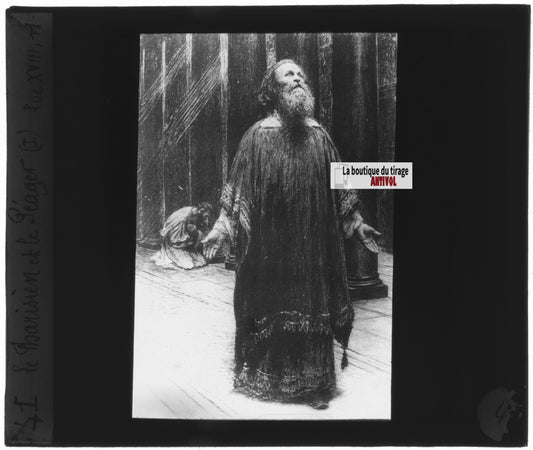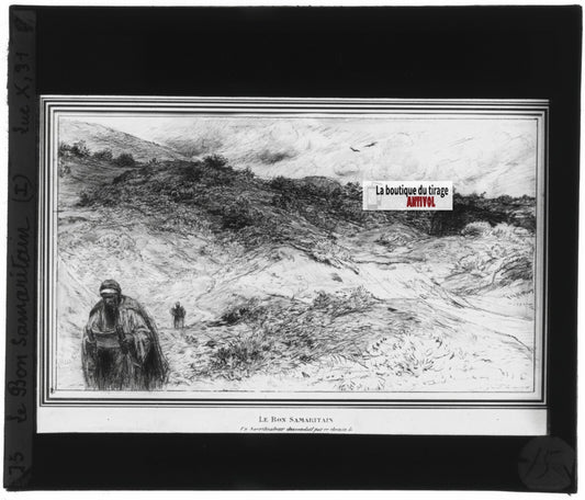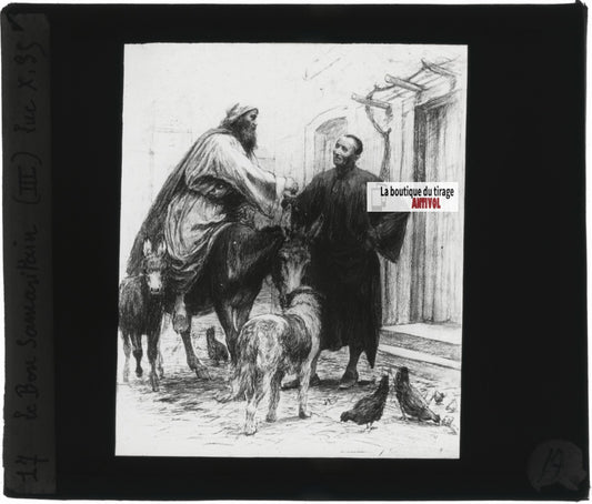 Luc, scène religieuse, dessin peinture plaque de verre, positif 8,5x10 cm