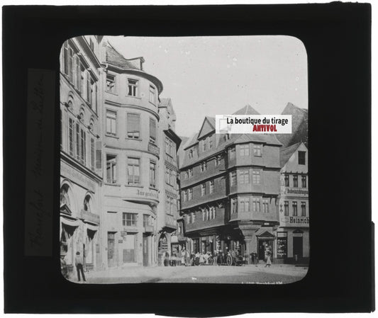 Maison de Luther, Francfort, photo ancienne plaque verre, positif 8,5x10 cm