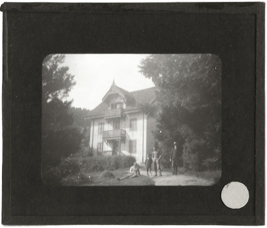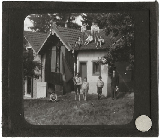 Maison de campagne, enfants, photo plaque de verre, positif 8,5x10 cm