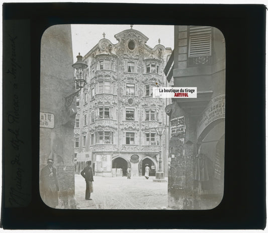 Maison Helbling, Innsbruck, photo plaque verre, noir & blanc, positif 8,5x10 cm