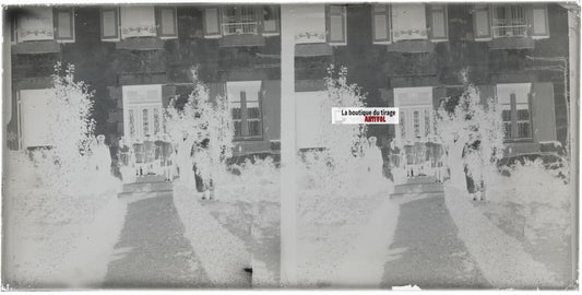 Maison, France, Plaque verre photo stéréo, négatif noir & blanc 4,5x10,7 cm
