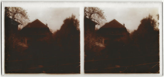 Maison, Plaque verre photo stéréoscopique, négatif noir & blanc 4,5x10,7 cm