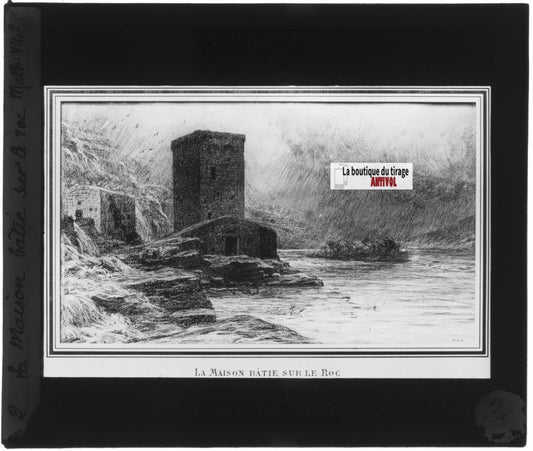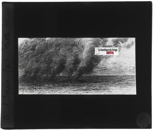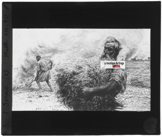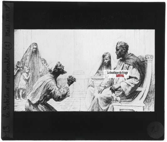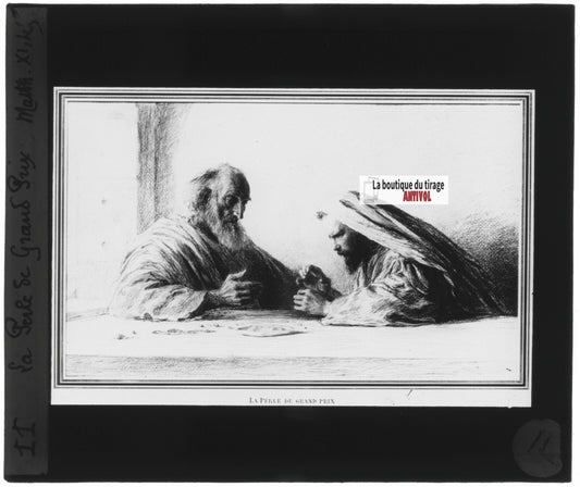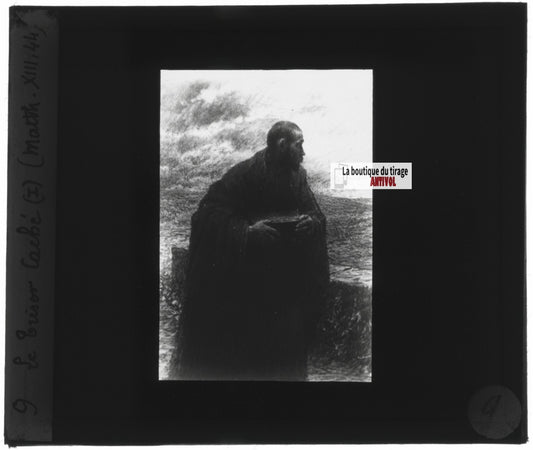 Matthieu, scène religieuse, dessin peinture plaque de verre, positif 8,5x10 cm