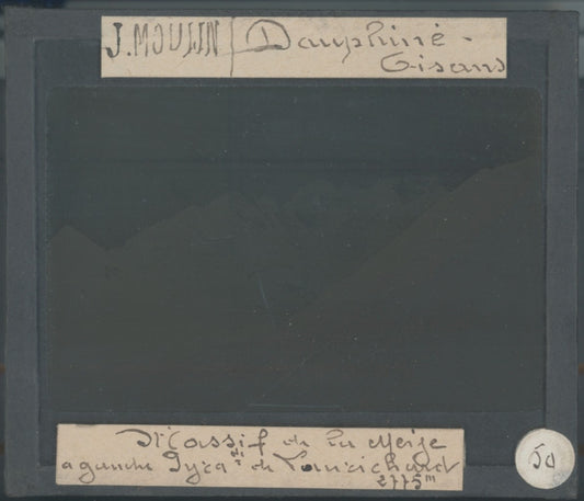 Massif de la Meije, glaciers, photo J. Moulin, plaque verre, couleur, 8,5x10 cm