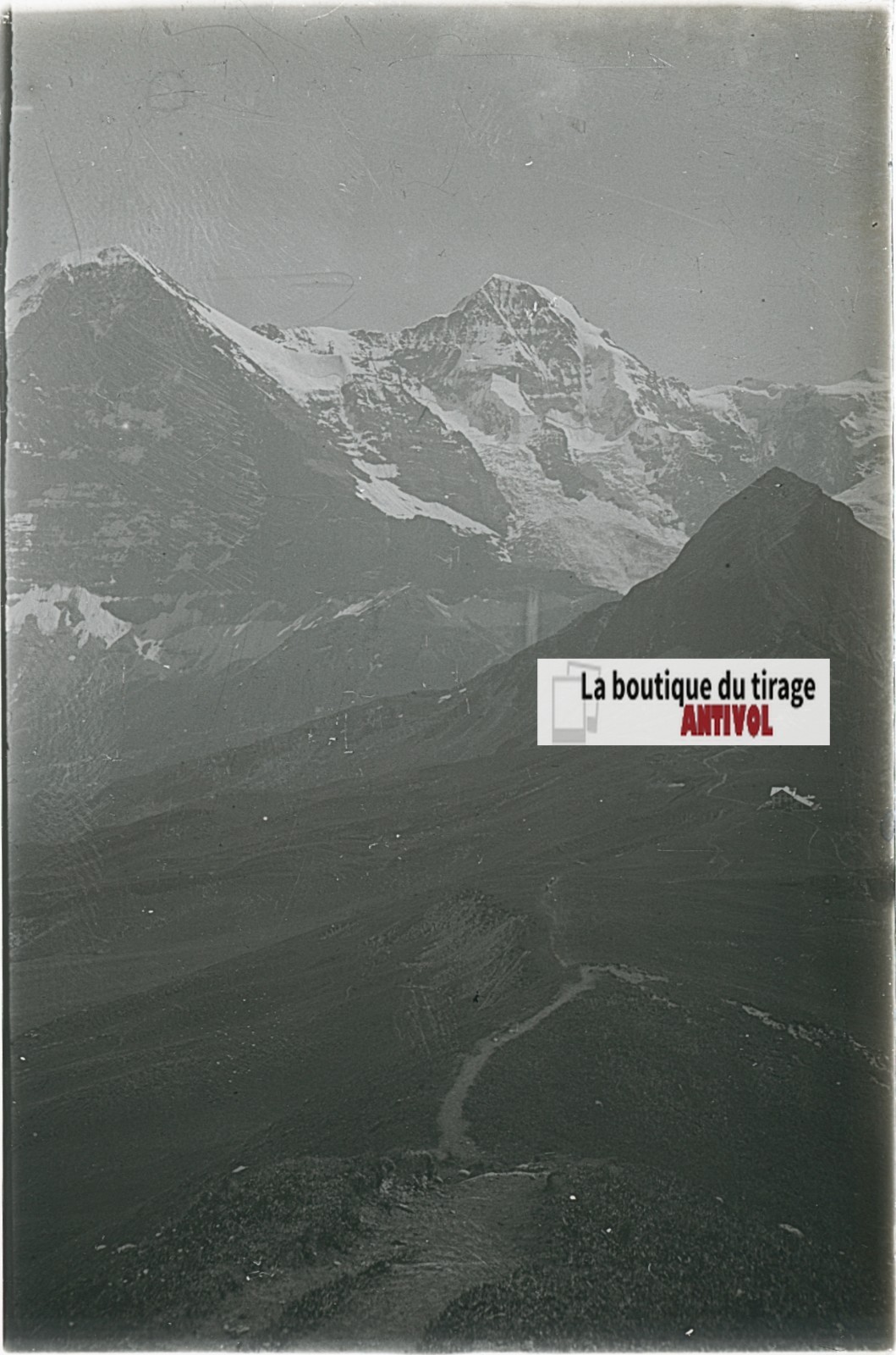 Alpes enneigées, Alpes Suisse, stéréo photo plaque verre, noir & blanc, 9x12 cm