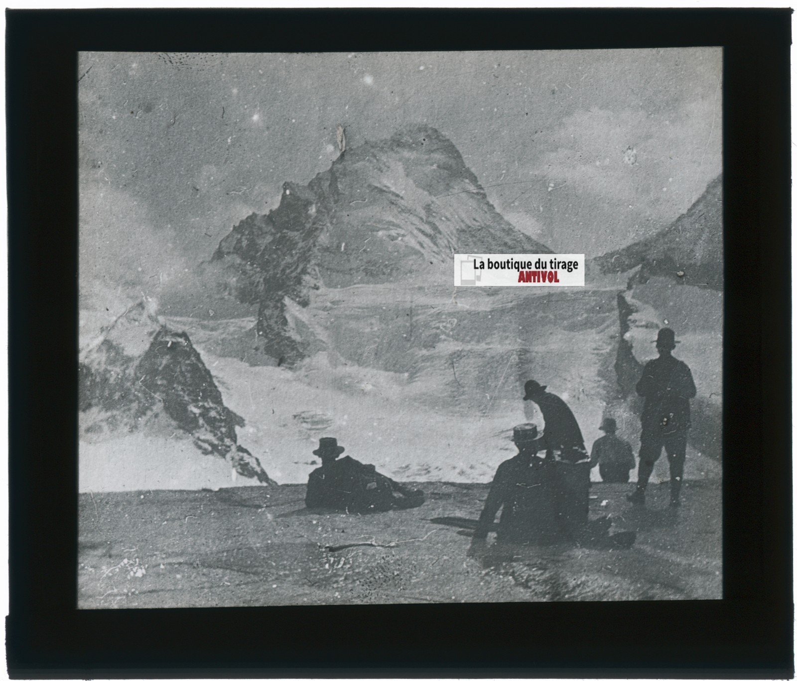 Alpinistes, montagne Suisse, photo plaque verre, noir & blanc, positif 8,5x10 cm