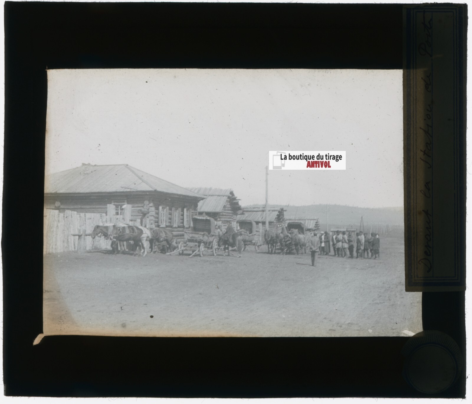 Une image ethnographique rare, documentant la vie quotidienne en Russie orientale au tournant du siècle, entre tradition paysanne et moyens de transport d’époque.