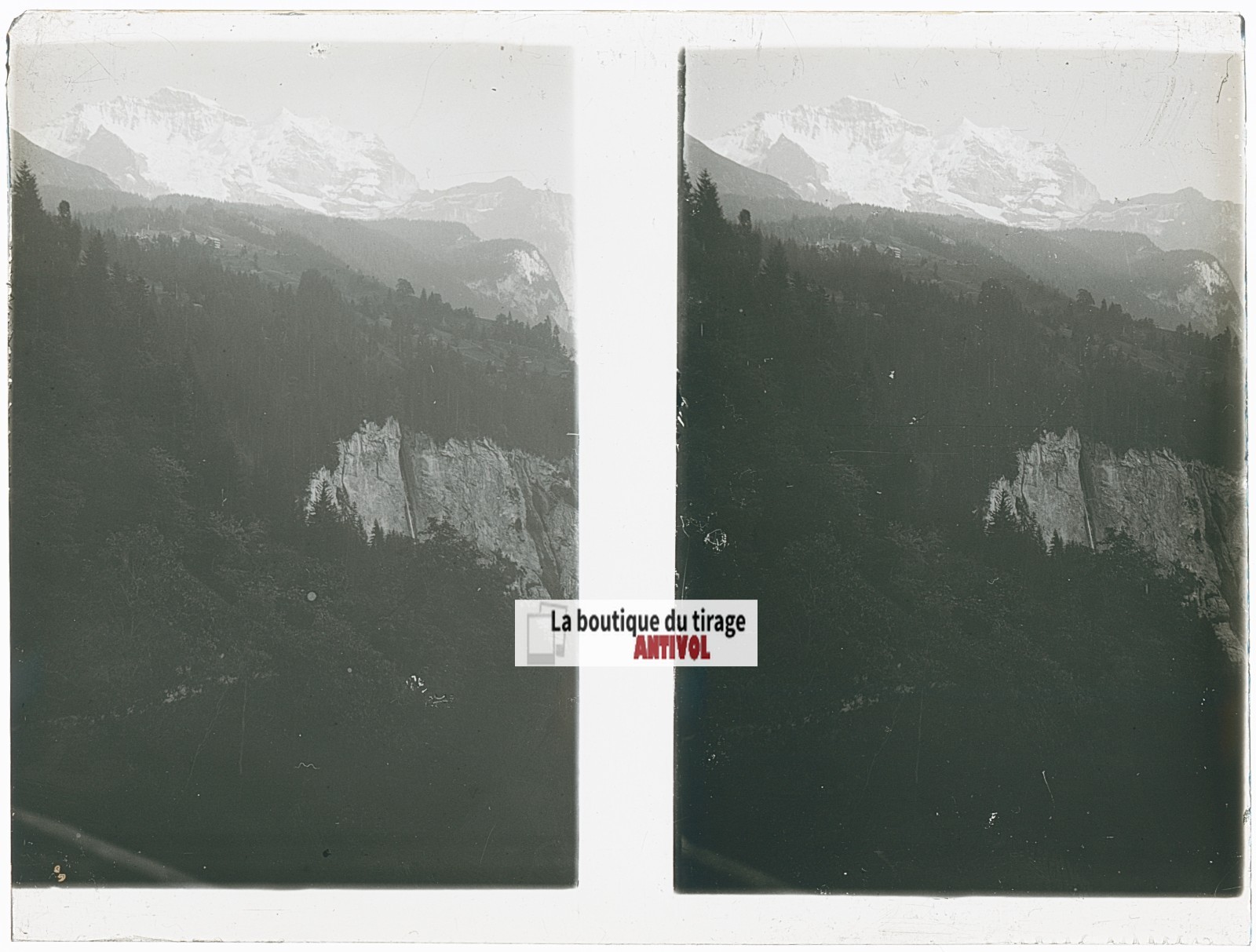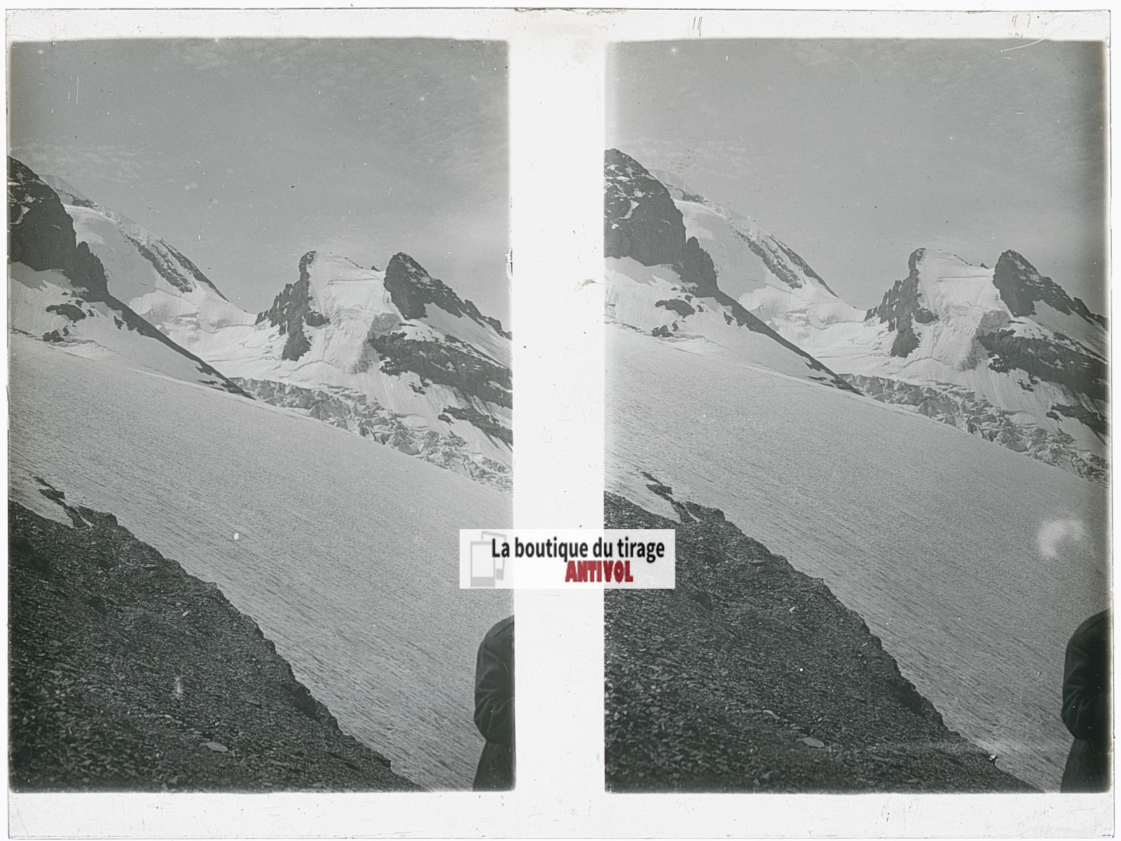 La Jungfrau et le Silberhorn, stéréo photo plaque verre, noir & blanc, 9x12 cm
