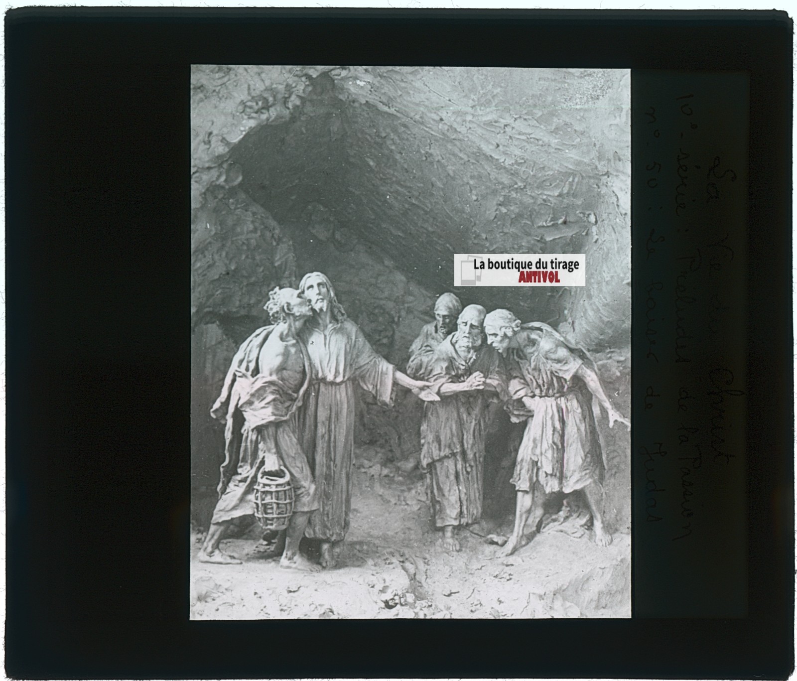 Le reniement de Pierre, photo plaque verre, noir & blanc, positif 8,5x10 cm