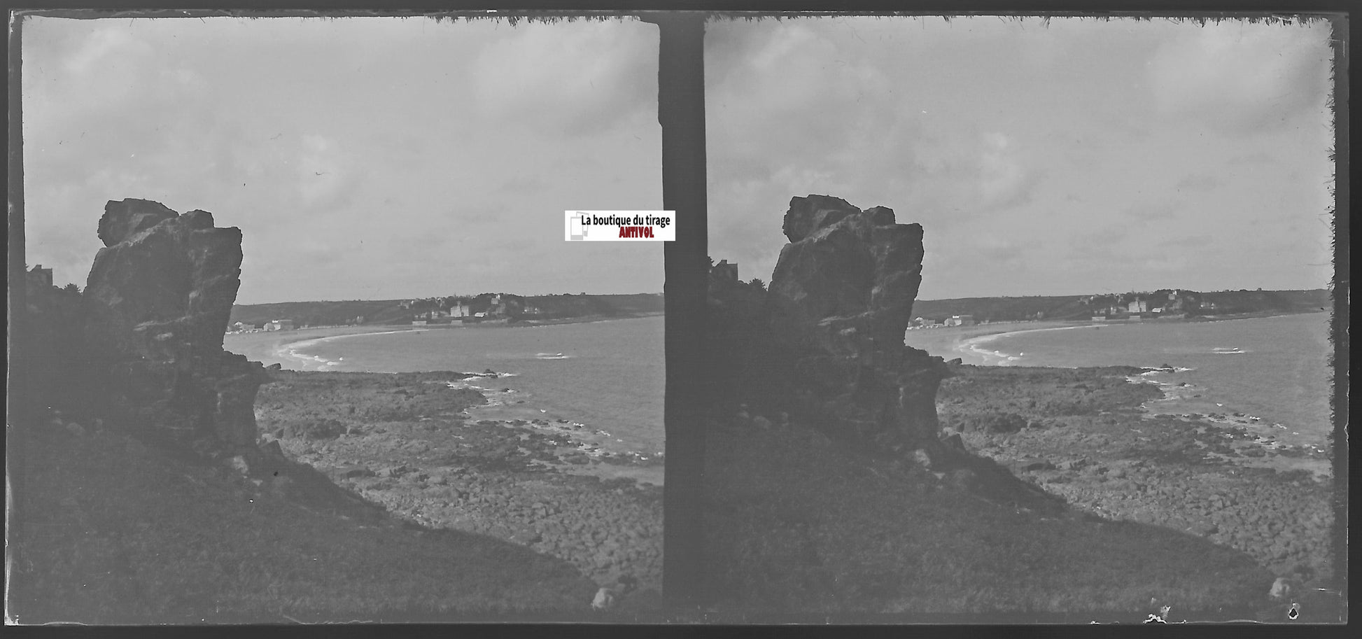 Perros-Guirec Pors Nevez, Plaque verre photo stéréo négatif noir & blanc 6x13 cm