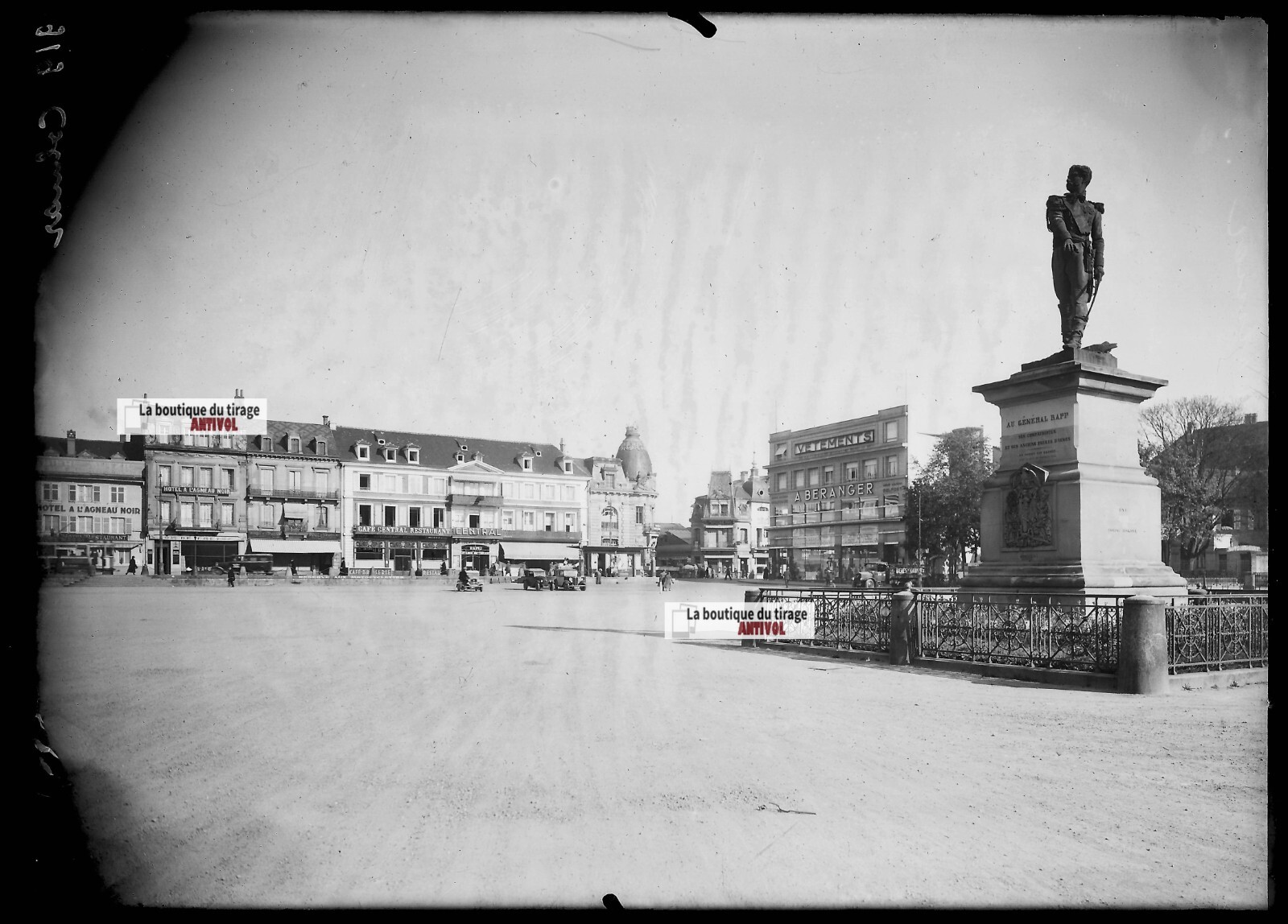 Plaque verre photo ancienne négatif noir et blanc 13x18 cm Colmar voitures