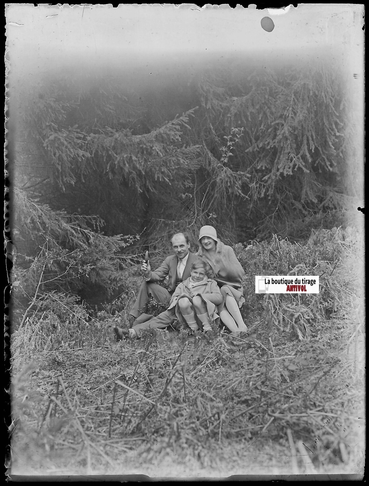 Plaque verre photo positif noir et blanc 6x9 cm famille forêt bois glass plate