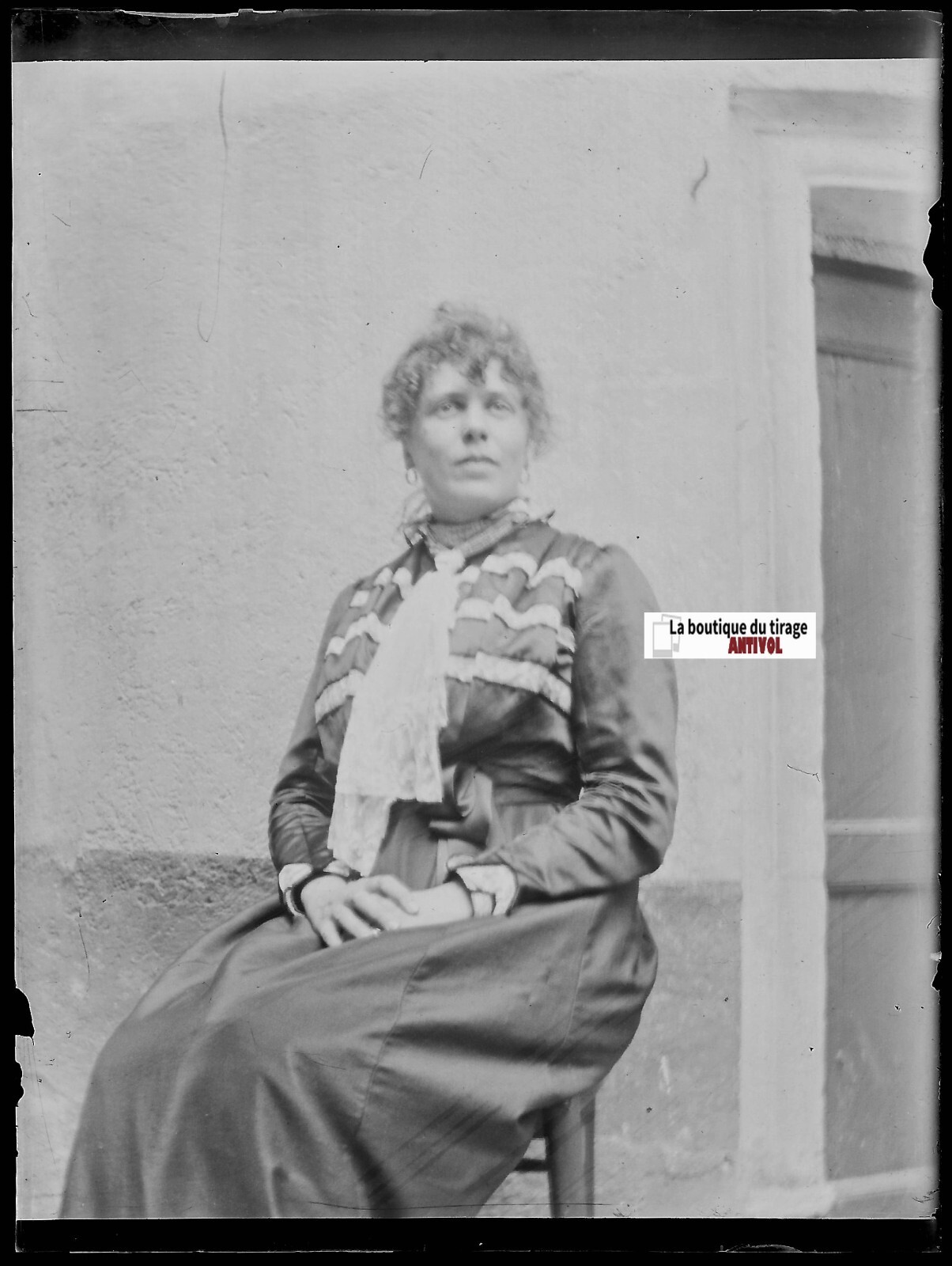Portrait femme, photo ancienne plaque verre, négatif noir & blanc, 9x12 cm