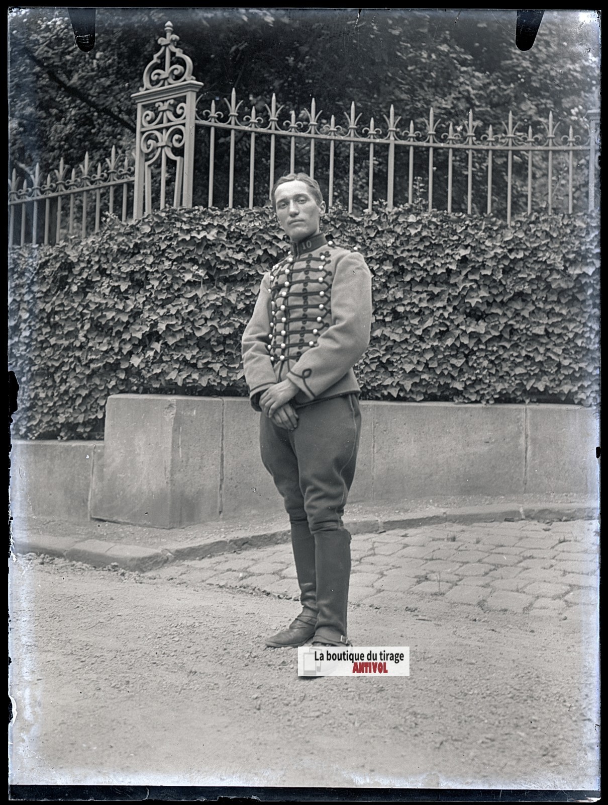 Soldat du 10ᵉ régiment, plaque verre, photo ancienne, négatif N&B 9x12 cm
