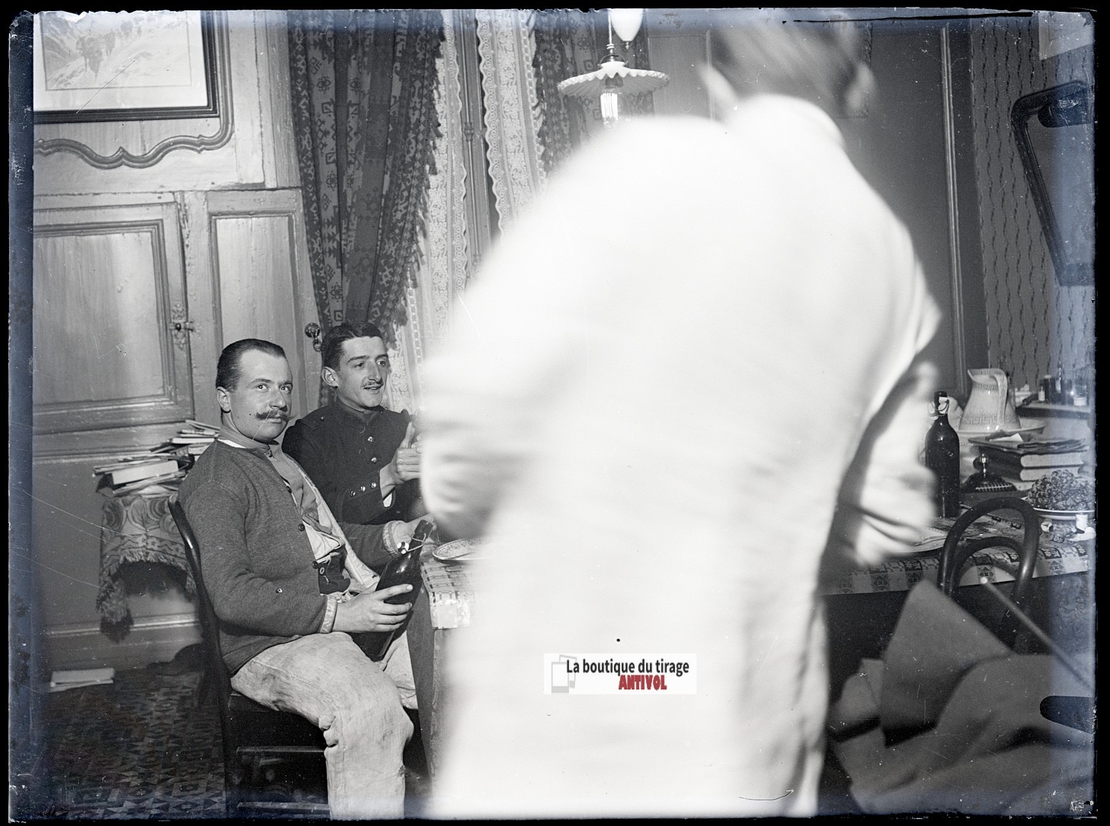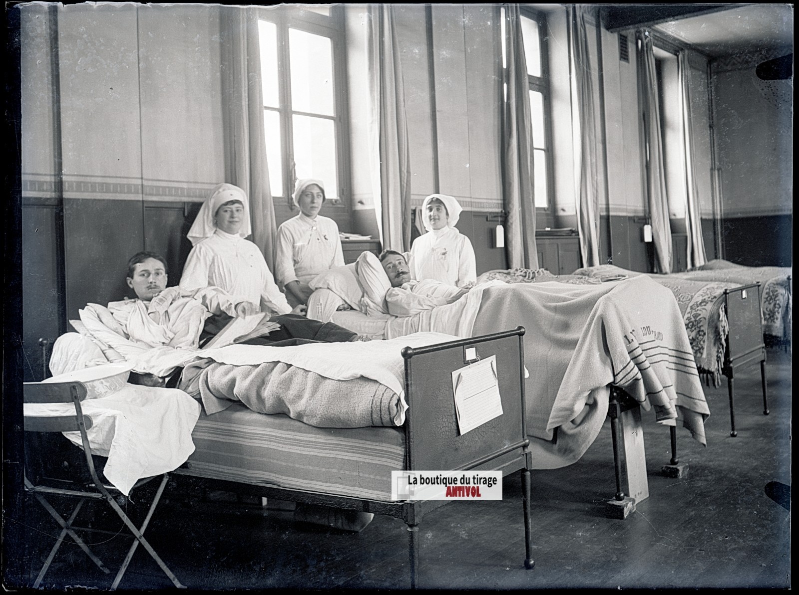 Soldats, hôpital militaire, plaque verre, photo ancienne, négatif N&B 9x12 cm