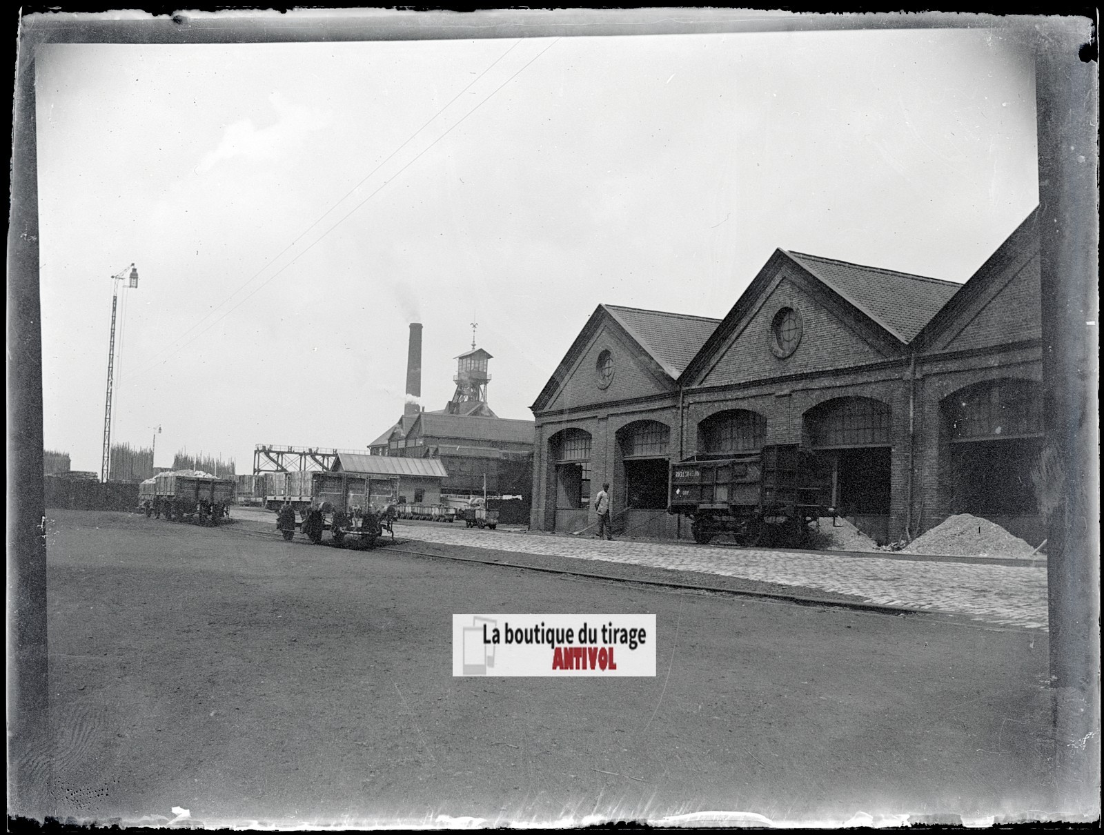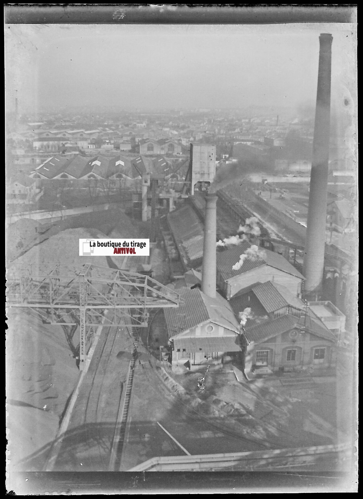 Usine, industrie, photo ancienne plaque verre, négatif noir & blanc, 9x12 cm