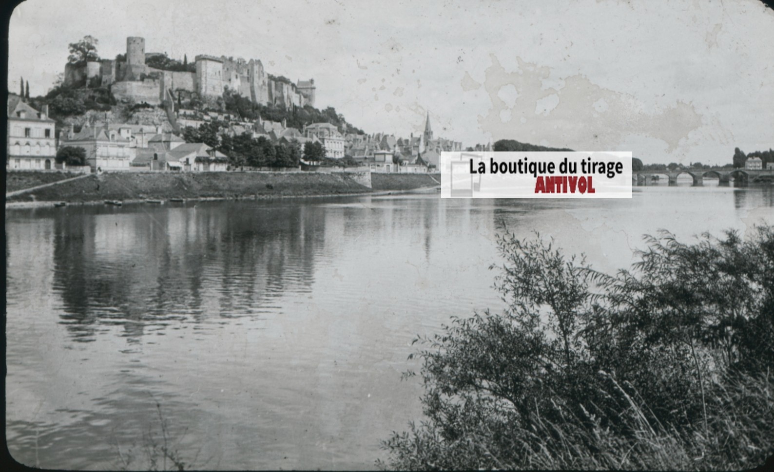 Vue panoramique de Chinon, photo plaque verre, noir & blanc, positif 8,5x10 cm