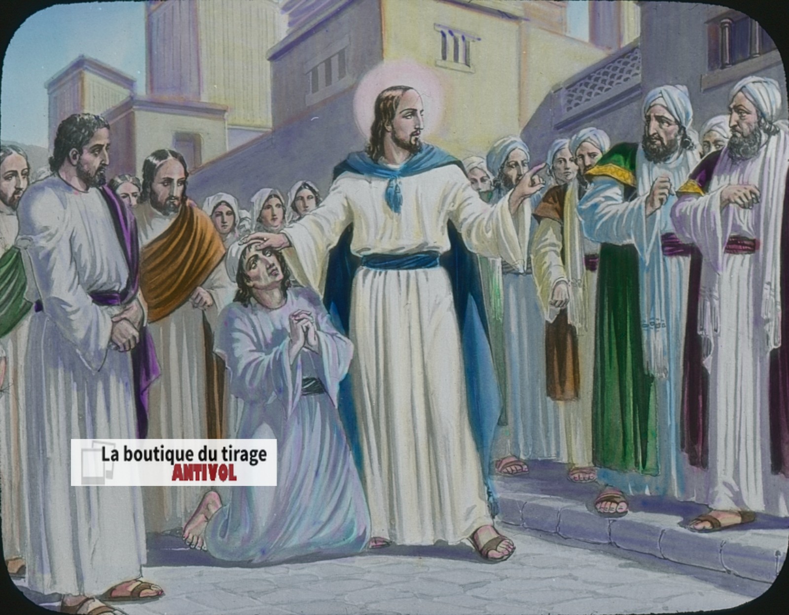 📷 « Zachée se hâta de descendre, et le reçut avec joie » – Plaque de lanterne magique